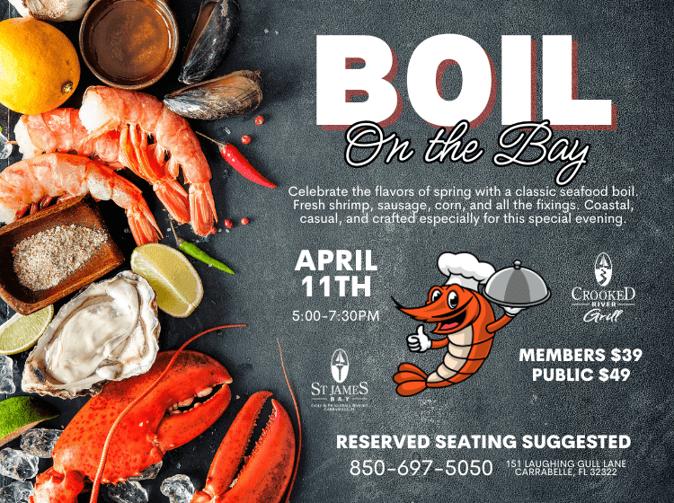 Crooked River Grill 133 Quail Ln, Monticello, FL, United StatesGet ready for a true coastal feast at Boil on the Bay. We’re bringing the heat with a seafood-forward dinner packed with fresh Gulf flavors, bold spices, and ice-cold drinks…